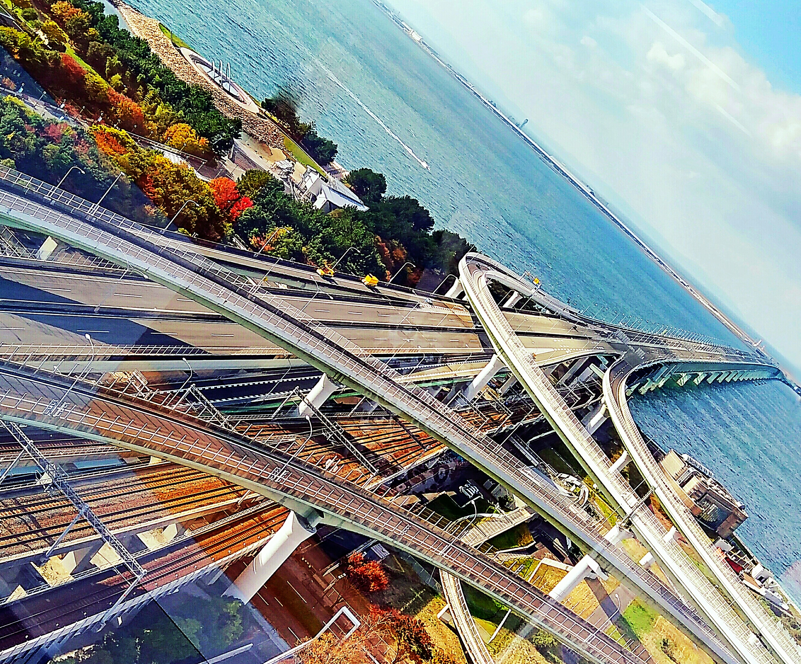 漫画の雰囲気を味わうには実際に橋の上を渡るのがイイんですが、上から見ると立体交差がこれまたイイ雰囲気です。
